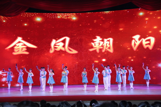 最终在3月4日的演出中,面临整场晚会都来自于南方歌舞团等艺术整体专业演员的压力,我们绝不怯场,依然满怀激情、全情投入。音乐一最先,奇异的快板演出就吸引了在场合有人的眼光,接下来,节奏紧凑的演出一环扣一环。节目中心穿插了一曲感感人心的演唱“妻子辛勤了”。“妻子”角色可谓是罗晶的本色出演---一位贤能的“金凤”相夫教子敬公婆的场景,充分体现了中华妇女的古板美德。“老人”、“小孩”的进场、歌手的深情演唱、以及“妻子”罗晶的专心演绎将演出推向了一个小热潮。最后《金凤向阳》在激昂的快板舞中完善竣事。我们将整个作品内在体现得淋漓尽致,深深熏染了在场的宽大职工,赢得了阵阵掌声。